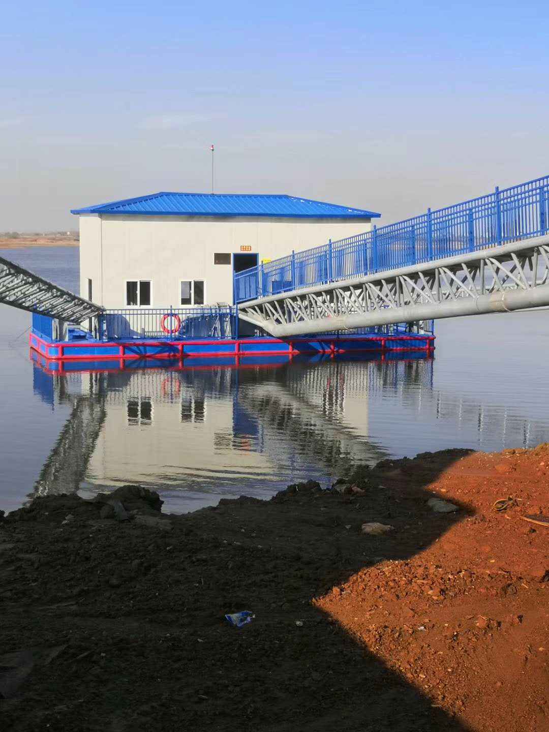 - 茌平县东邢水厂项目取水浮船泵站正在安装中 2022-06-10